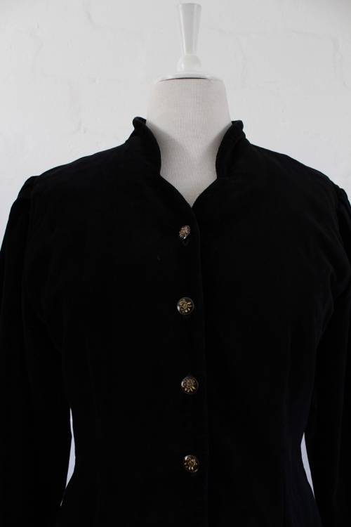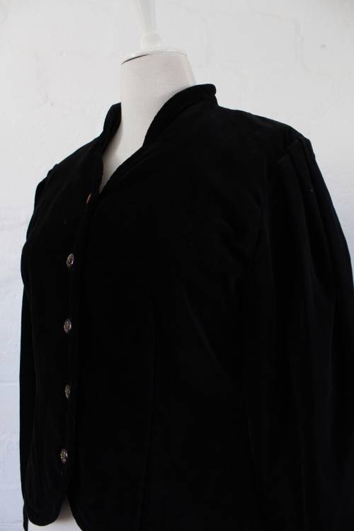 Stunning authentic vintage black velvet high collar jacket with puffed sleeves. Fully lined.