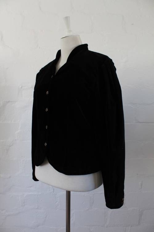 VINTAGE BLACK VELVET HIGH COLLAR JACKET - SIZE 12