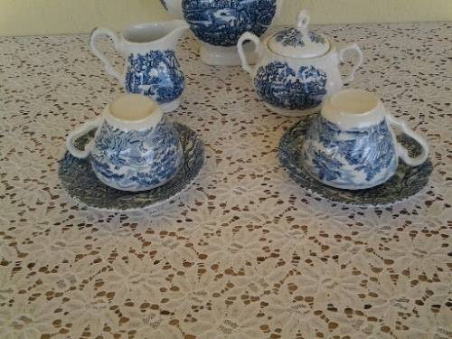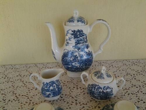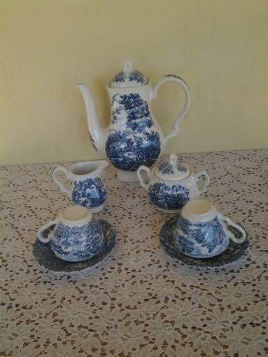 vintage blue and white the hunter myott part coffee set items consist of a coffee pot milk and sugar bowl and two duos that can be used for coffee or tea items are in good used condition