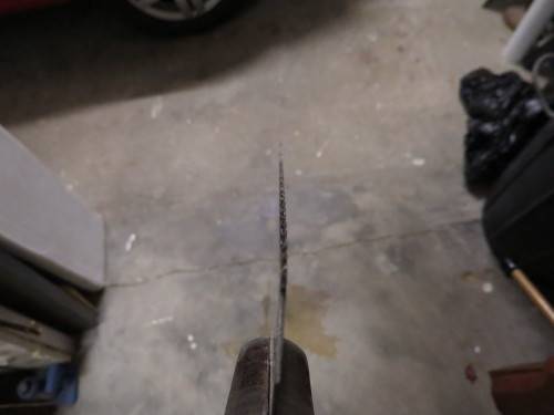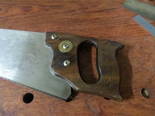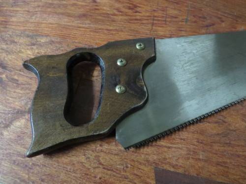 Bought about 15 years ago, nothing wrong with it, good user. I just have too many saws. Teeth are sharp, none missing, plate is pin straight, no kinks, warps, bends, nothing. Measures 550mm along the teeth and has 10ppi. Looks about 20 degrees rake and 15 degrees fleam and is not breasted. Teeth were hardened.