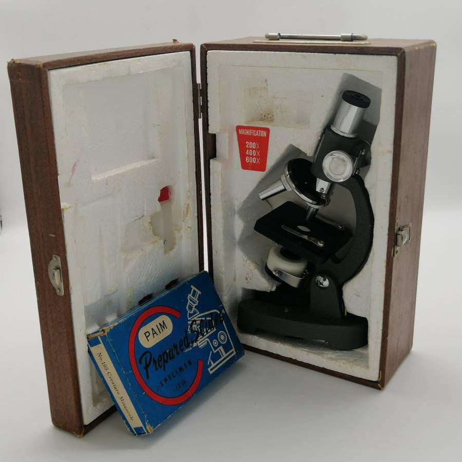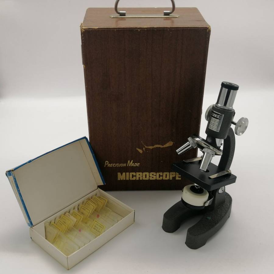 Vintage Boxed Cast Metal Microscope with Original Specimen Plates!!!