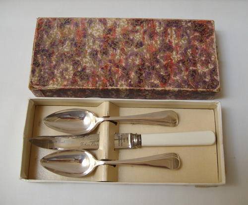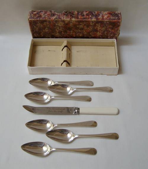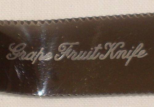 Spoons: E.P.N.S., Knife: Stainless, Sheffield, Eng. (England) and Grape Fruit Knife.