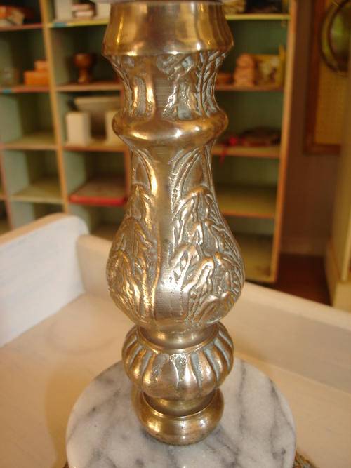 Vintage Brass and Marble Lamp Bases sold as a pair . Both are in perfect condition with no chips or scratches to the marble . There are no makers marks on either base and the age is undetermined . Sold without electrical fittings or shades which allows for a more personal touch for these most elegant of pieces . Total base diameter - 19.5 cm x 19.5 cm . Height - 43 cm . Total weight - 4 kg ( 2 kg each)
