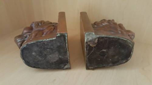 Vintage Brass bronze lion head bookends, both in good condition. Please be advised that I have not cleaned the bookends. Some customers prefer the old patina.