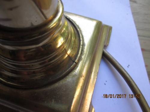 BEAUTIFUL VINTAGE BRASS TABLE LAMP CAST BASE ETC...SMALL CRACKS AS PER IMAGES 420mm HIGH...TOP QUALITY....