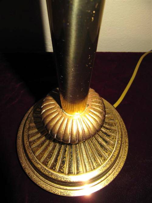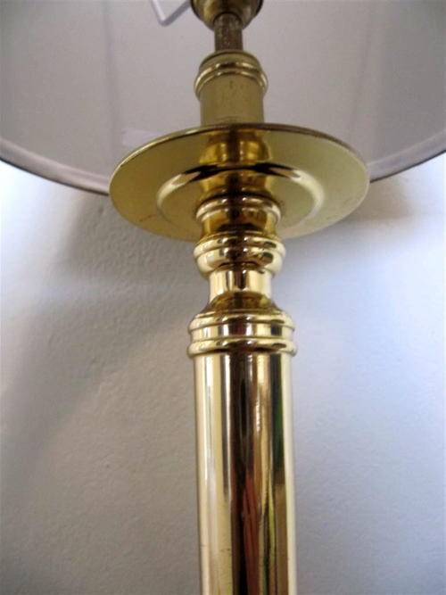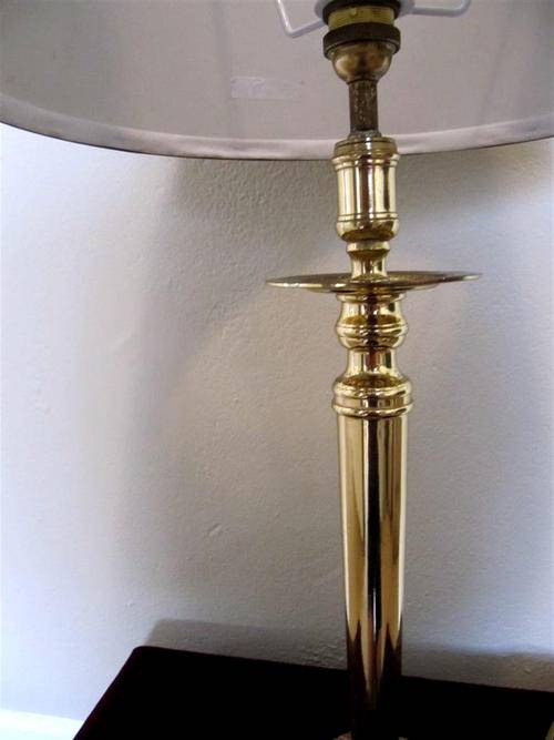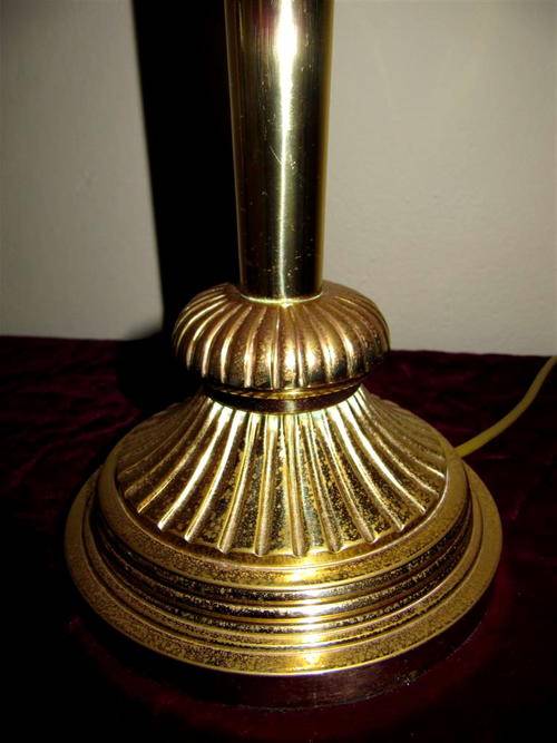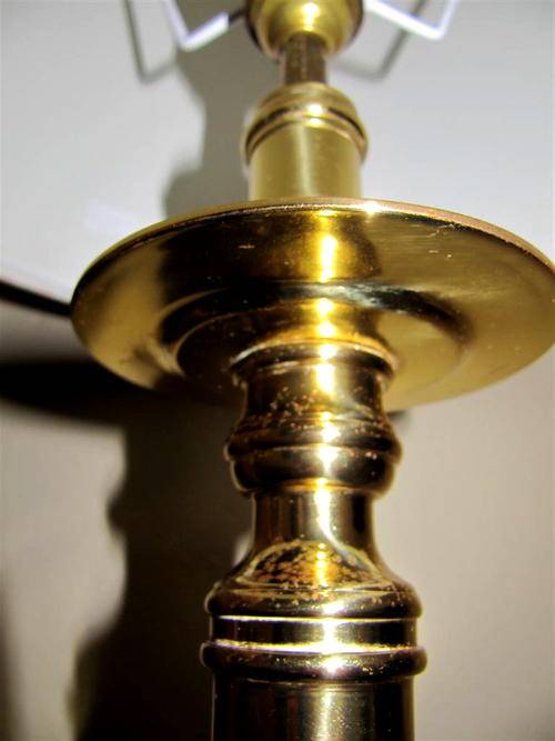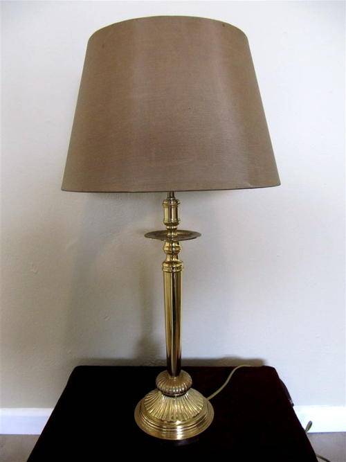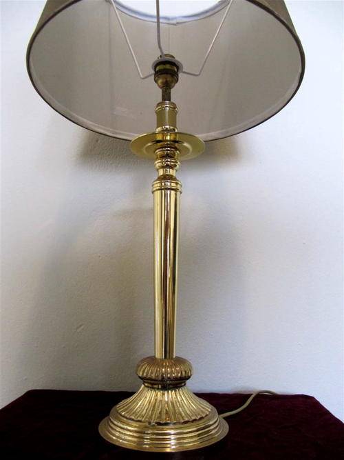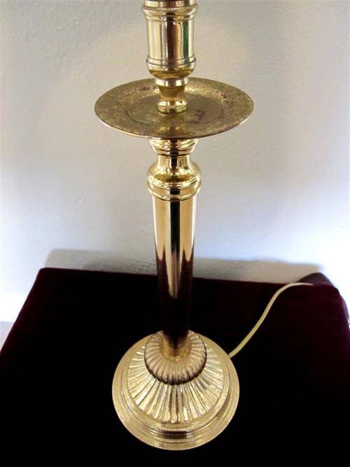 This Brass lamp has a candelabra design, with an ornate design on the base and a coned pillar styled stem leading up to a lovely design top end. It is fitted with a lovely circular lamp shade as well, included in your bid. The brass is in excellent condition - just needs a polish! See photos for the stunning design and details.