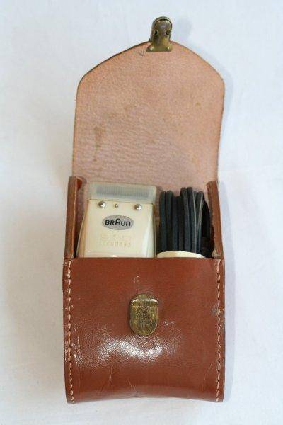 THIS IS A BEAUTIFUL OLD BRAUN ELECTRIC SHAVER IN THE ORIGINAL LEATHER POUCH!!! IT IS IN EXCELLENT CONDITION AND STILL WORKS!!! THE LEATHER POUCH CLOSED IS APPROXIMATELY 125mm x 80mm WIDE. PLEASE VIEW THE PICS VERY CAREFULLY FOR MORE DETAIL AND THE CONDITION. STANDARD POSTAGE AND PACKAGING OR PLEASE ARRANGE TO COLLECT IN BOKSBURG!