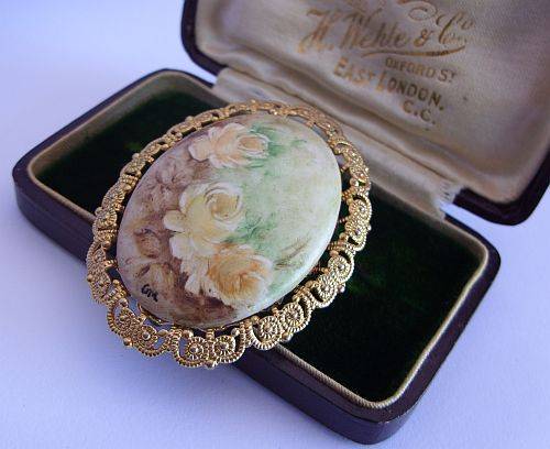 VINTAGE BROOCH - HAND PAINTED AND SIGNED