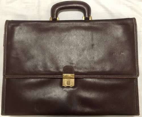 VINTAGE BROWN BRIEFCASE WITH LOCK - VARIOUS SPACIOUS FOLDERS. LOCK STILL WORKS.