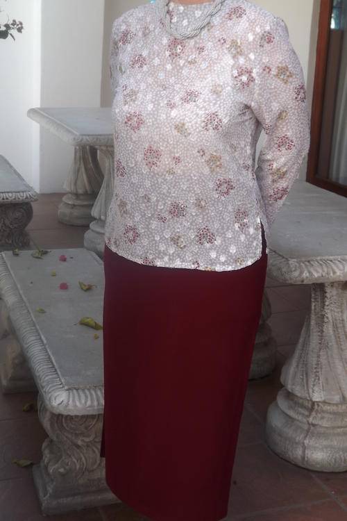Vintage Burgandy Pencil Skirt with Slit in Size 12 - 36.