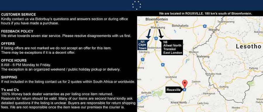R35.00 Standard shipping using one of our trusted couriers applies to most areas in South Africa. Some areas may attract a R30.00 surcharge. This will be calculated at checkout if applicable. Check my rate