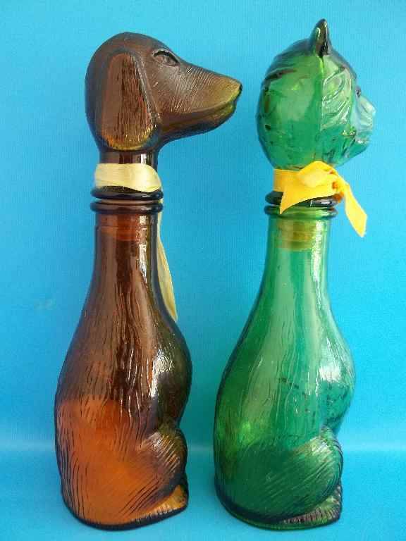 Vintage c1970's Glass Shampoo/Bath Salts Cat & Dogs Bottles - 23,5cm