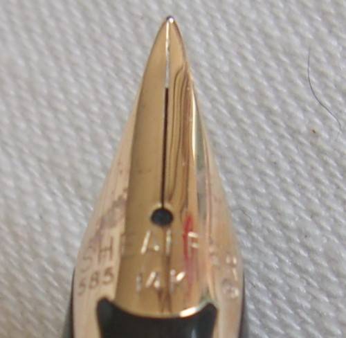 Vintage cased Sheaffer 440 White Dot fountain pen with 14k gold nib. This USA made pen dates to the 1970s. It is black with a brushed steel cap with gold plated clip, and has a 14k gold nib. The pen is a squeeze filler. It is in good (untested) condition, and comes in a Sheaffer box with booklet. Great buy for the collector.