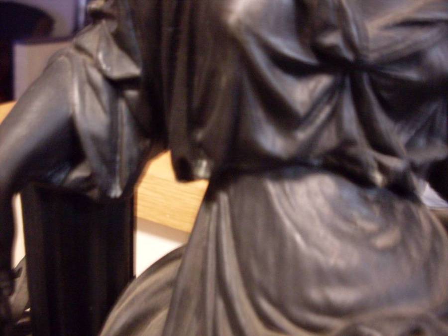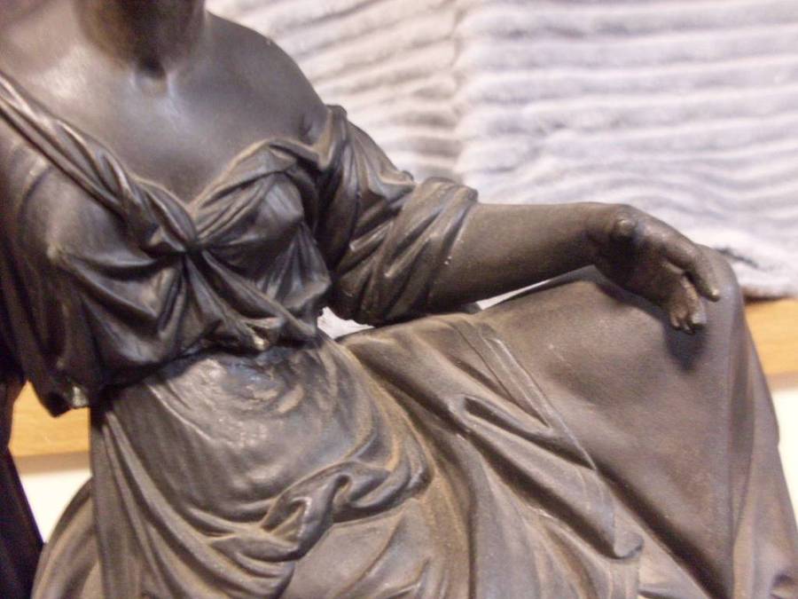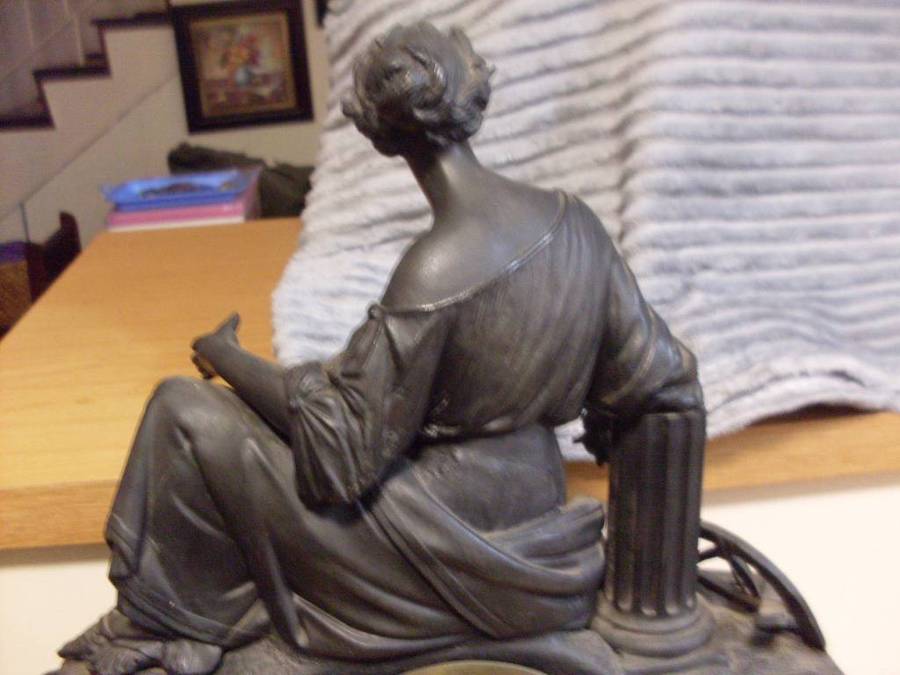 VINTAGE CAST IRON MANTLE CLOCK (FRENCH ?????) WITH SEATED LADY...SEE DESCRIPTION