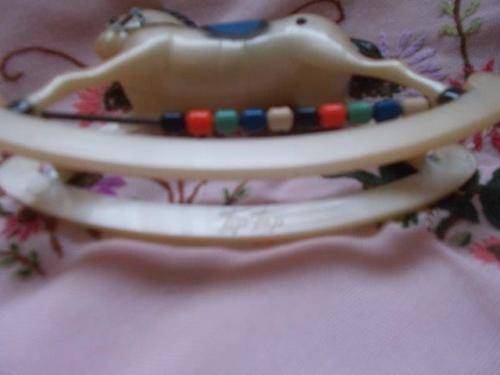 very collectable tip top celluloid baby's rattle given In the 1940 as a baby shower gift below is taken off the internet for you're interest the toy is still in good used condition some slight wear but in the hole still nice