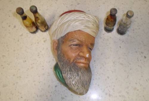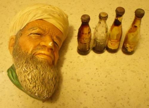 BOSSONS CHALKWARE HEAD VINTAGE + 2 X COCA-COLA MINIATURE BOTTLES