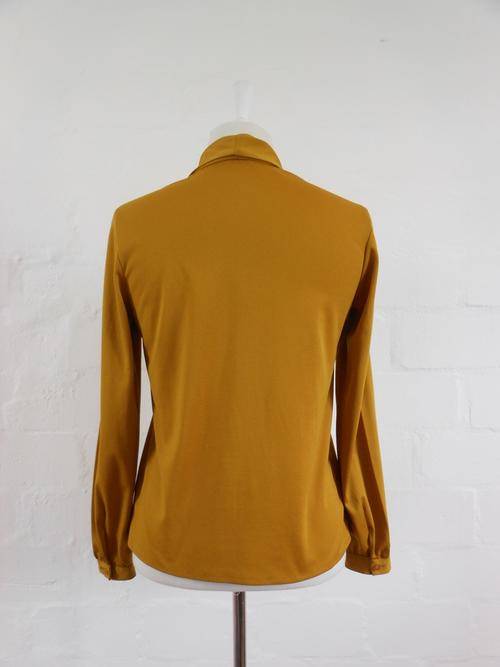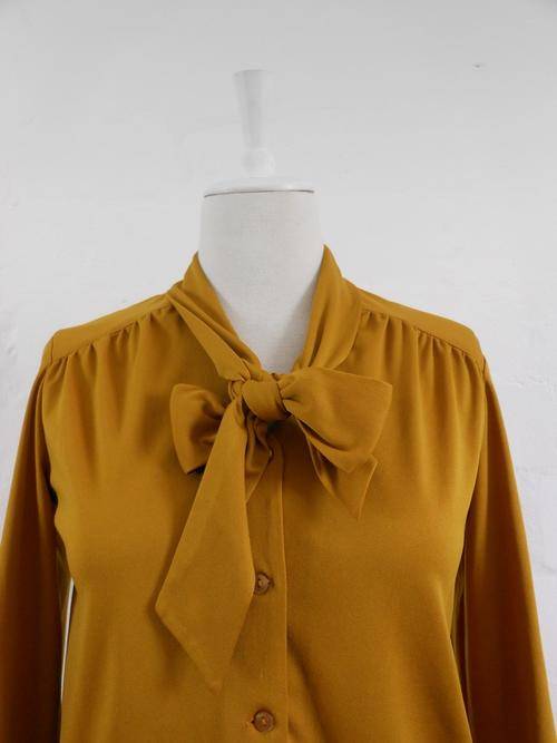 VINTAGE CHARTREUSE GOLD PUSSYBOW LONG SLEEVE BLOUSE TOP SHIRT - SIZE 8