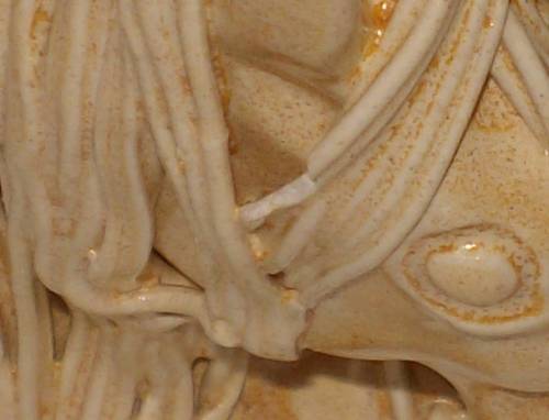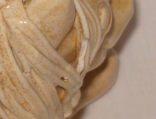 No cracks, with slight damage to mane above one eye (see close-up images).