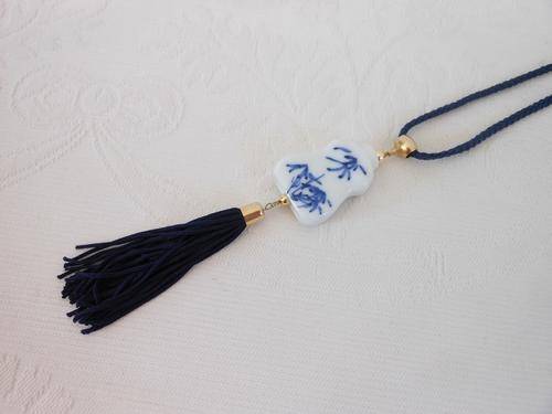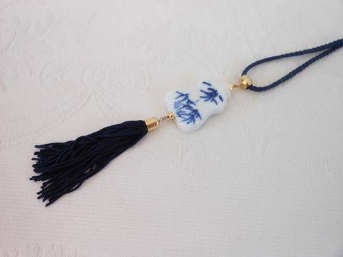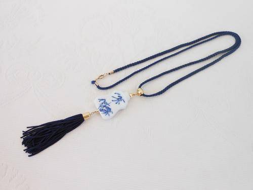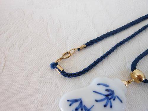 VINTAGE CHINESE BLUE WHITE PORCELAIN PENDANT NECKLACE