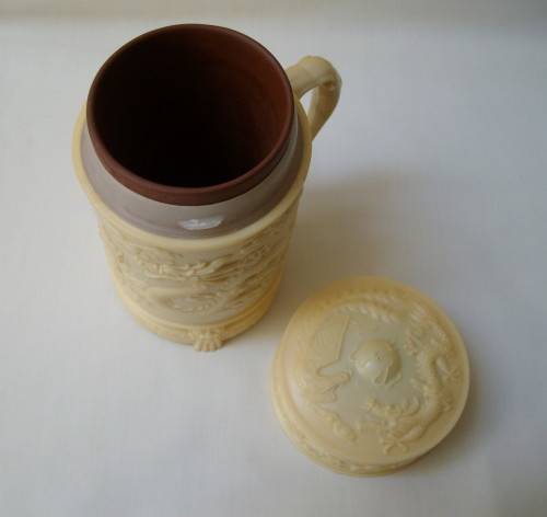 tankard, outer covering and cover depicting a mythical fenghuang bird (yin) and dragon (yang)