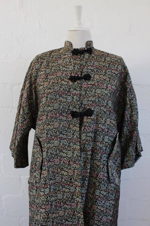 VINTAGE CHINESE FLORAL BROCADE SATIN JACKET - SIZE LARGE