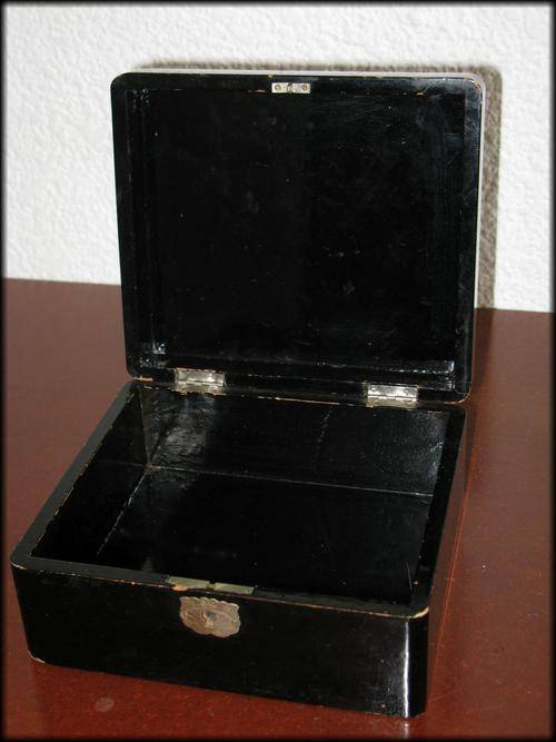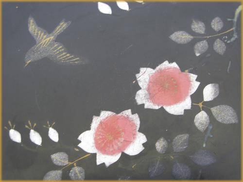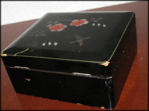 A very charming Chinese laquer box. Black with a swallow in flight motif.