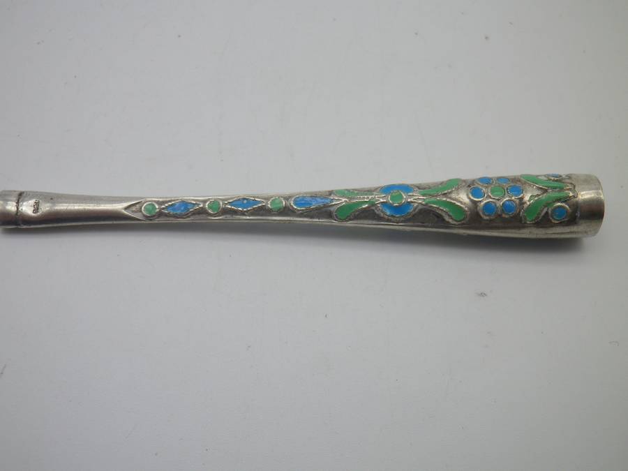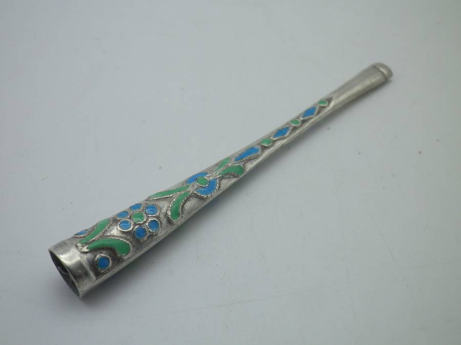 Vintage Chinese Sterling Silver & Enamel Cigarette Holder.