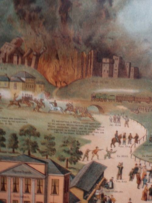 VINTAGE: OLD DUTCH CHRISTIAN PRINT 'DE BREEDE EN DE SMALLE WEG' (THE WIDE AND THE NARROW ROAD) GRAPHICALLY ILLUSTRATED! IT IS A GORGEOUS OLD OAK FRAME THAT IS IN GOOD CONDITION. THE PRINT IS GENERALLY OKAY - BUT HAS SOME STAINS ON THE EDGES AND A SMALL NICK ON THE LOWER LEFT SIDE. IT DOES NOT HAVE GLASS AND WOULD REQUIRE GLASS TO BE FITTED. SIZE: 61CM X 51CM (TOTAL SIZE INCLUDING FRAME) THE FRAME IS 5CM WIDE.