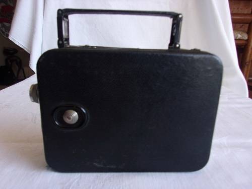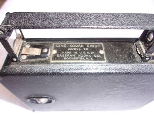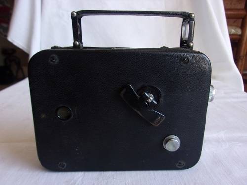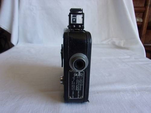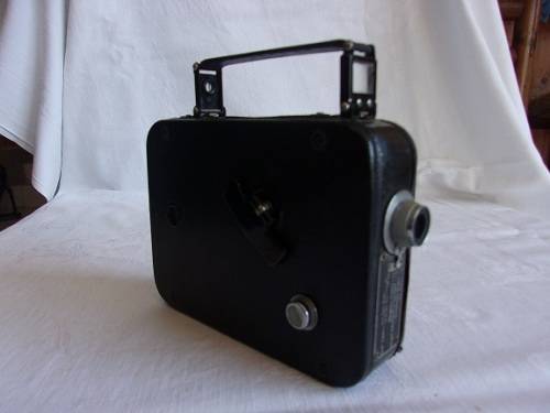 Vintage Cine-Kodak Eight Model 20 movie camera. This old movie camera was produced in the USA in the 1930s. The Cine-Kodak Eight Model 20, was introduced in 1932, one of the first to use 8mm film, enabling the average family to make home movies. The camera winds with a fold down crank on the side and has a button on the side to run it. The f stop adjusts from 3.5 to 16, and a guide on the side relates f stop to lighting condition. The camera is in good (untested) condition. Great buy for the collector.