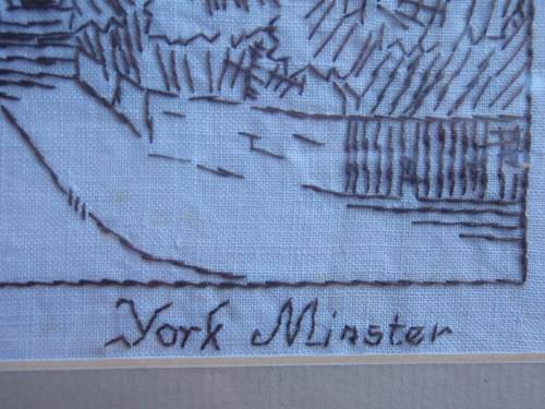 VINTAGE: CLASSIC HAND EMBROIDERED ON LINEN `YORK MINSTER` - BEAUTIFULLY FRAMED