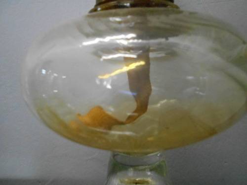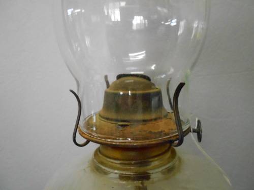 Vintage clear glass hurricane oil lamp with saw tooth chimney to add evening conversation the spesial charm. The lamp will bring the scene of the old world and will be a romantic accent of the room. In a very good condition with no chips or crackes.