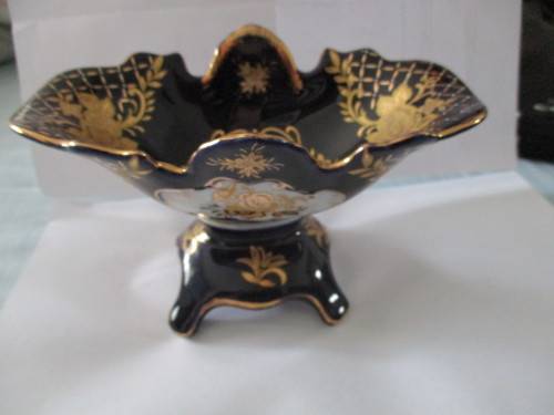 Antique Japanese oriental-footed fruit bowl,blue cobalt and gold. Measures 18cm wide x 11 cm high.It is in very good condition, no chips , no cracks.