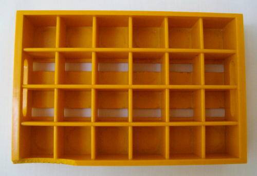 A twenty four division yellow plastic crate with seventeen sealed