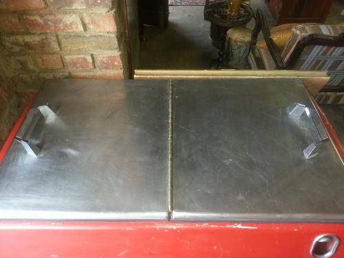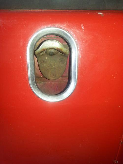 Retro Coca-Cola fridge. In Working condition. Top opening double doors, built in bottle opener.