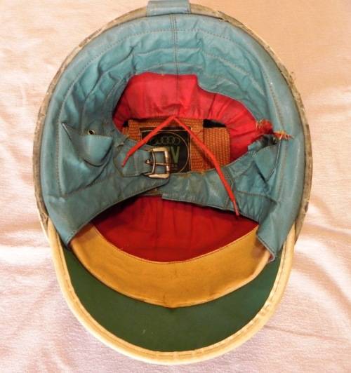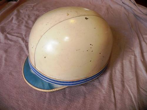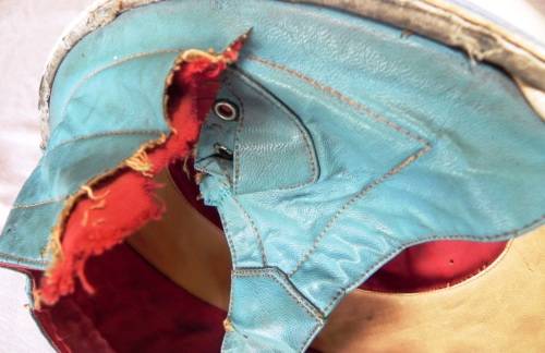 A highly collectible genuine AGV scooter / motor cycle bonehead helmet. Wear and and damage to leather as per picture. Note: This is not an SABS approved protection device. For display purposes only.