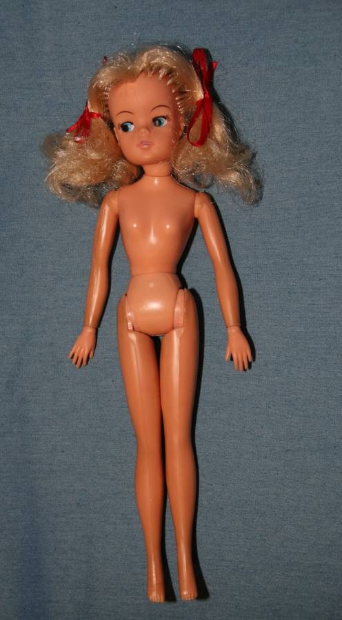 She is 28 cm tall, has a double neck joint, double twist waist, riveted shoulder joints, ball joints at the wrists and bending elbows and knees/ankles. Sindy can stand on tiptoe as her ankles bend and hold a pose. Her hair is made of Saran as was made in blonde only.