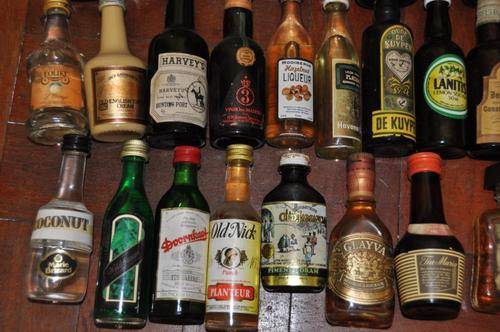 VINTAGE COLLECTION OF 58 SMALL (50ML) BOTTLES OF VARIOUS LIQUERS