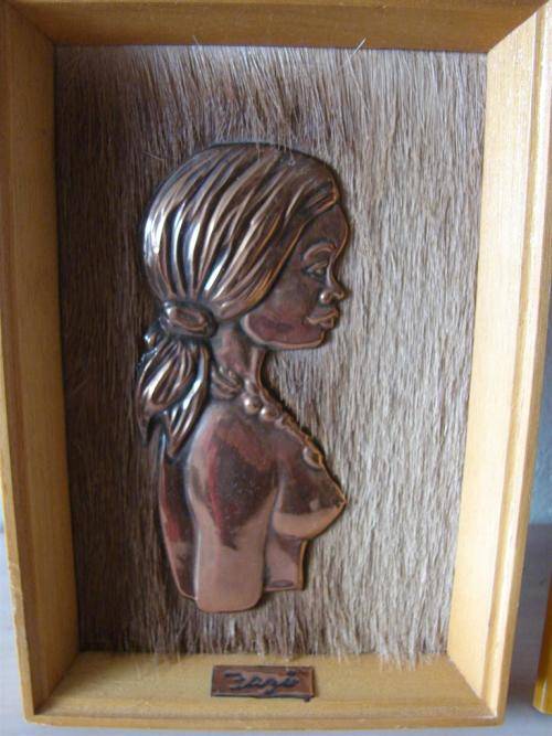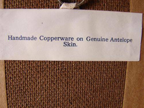 VINTAGE COPPER ART ON ANTELOPE HIDE