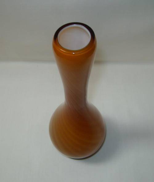 amber spiraling bands, specimen vase of bulbous bottle form.