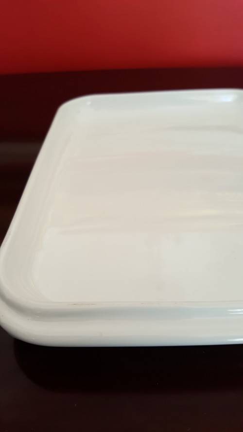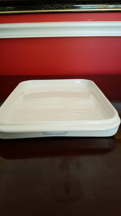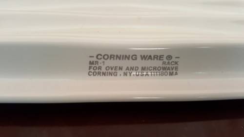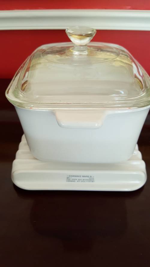 Beautiful crisp white Corning Ware ribbed pot stand. Perfect to place your hot pots or corning ware dishes from the stove or oven to prevent burning your counter top or table. You can also use this on your dinningroom table and place your serving dishes on this. This is a rare item, that I have never seen before. My parents bought this in the USA many, many years ago. It is in perfect condition with no chips, cracks or crazing. Size is approximately 22cm x 15.5cm. Side stamped: Corning Ware for oven and microwave.Corning New York USA.