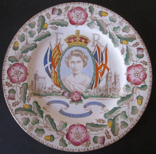 Vintage Coronation of Queen Elizabeth 02 June 1953 Plate, 262mm wide (Burleigh Ware)