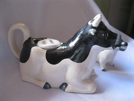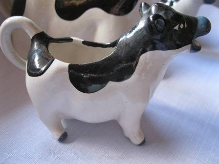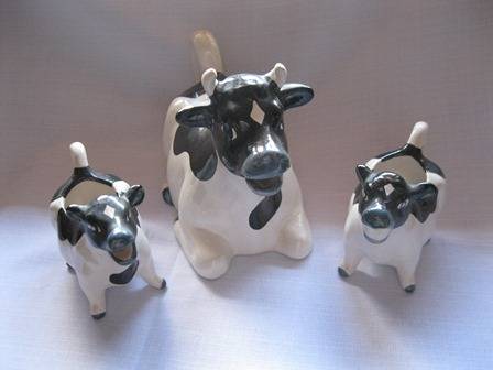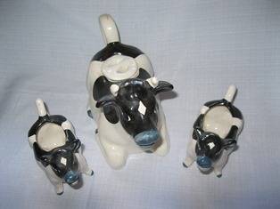 Vintage Cow Teapot, Creamer and sugar basin in black and white all shaped like a cow, the set has no chips or cracks!!