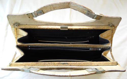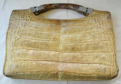Offered on this auction is this Vintage CROCODILE / ALLIGATOR Skin HANDBAG.