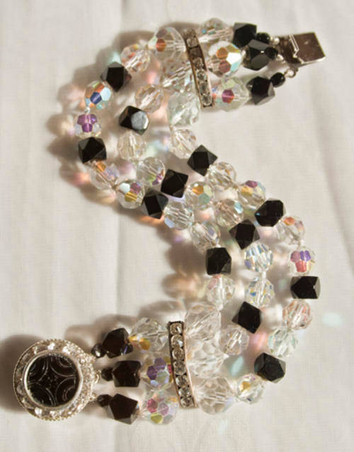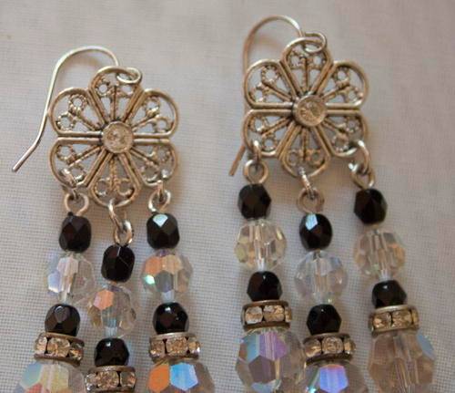 On offer, is this VINTAGE CRYSTAL BEAD EARRINGS - BLACK AND CLEAR AURORA BOREALIS BEADS - DIAMANTE RONDELS. Made from vintage crystal beads, with modern setting. This exquiste pair of VINTAGE CRYSTAL BEAD EARRINGS - BLACK AND CLEAR AURORA BOREALIS BEADS - DIAMANTE RONDELS is in PRISTINE condition. There are no cracks, chips, scratches, rubs. (see photos). AURORA BOREALIS DIMENSIONS: Earring drop: 5cm This VINTAGE CRYSTAL BEAD EARRINGS - BLACK AND CLEAR AURORA BOREALIS BEADS - DIAMANTE RONDELS, WOULD MAKE A WELCOME ADDITION TO YOUR JEWELLERY COLLECTION.