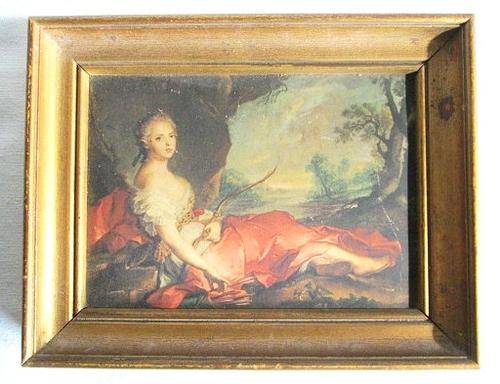 A lovely vintage wooden and cushion framed print of the Renaissance Period "Lady". Size 18 cm x 14 cm.