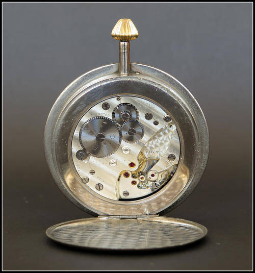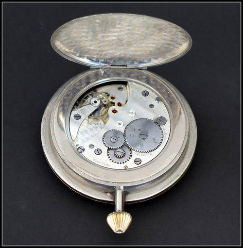 CLOCK MECHANISM IN WORKING ORDER, REQUIRES RESTORATION, WINDING KEY LOOSE, SECONDARY MINUTE HAND MISSING, AND IN FAIR CONDITION APART FROM SOME AGE-RELATED WEAR.