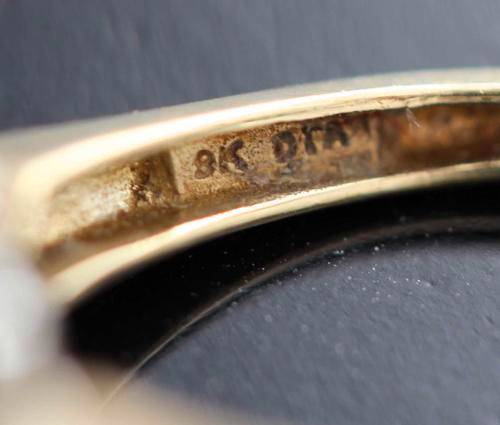 The ring bears the hallmarks 9K for the gold, DIA for authenticated diamonds and the jeweller signature. There are also the marks for British origin, including the assay office (see photograph).
