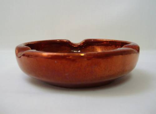 An extremely rare copper luster glazed ceramic round ash tray, from the Jacoba Pottery range