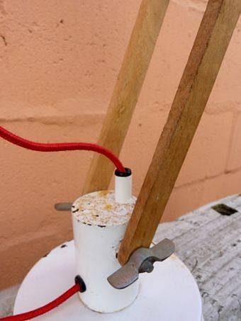 WOOD AND METAL WITH RED CORD CABEL