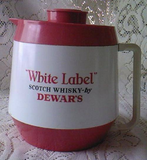 On offer, vintage Dewar’s plastic water jug with lid. Marked “White Label” Scotch Whisky – by Dewar’s, and has a picture of the marching Scotsman under the spout. Made in Great Britain by CMS Coventry. Measures 14.5cm in height. No damage except a chip to the knob of the lid.